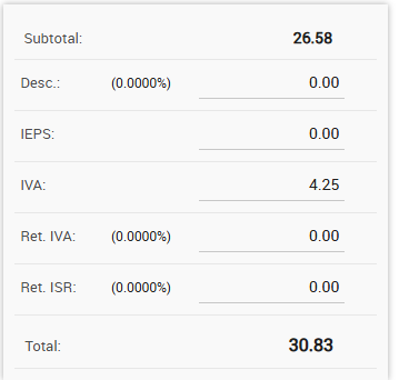 Retenciones (IVA e ISR): calculadas según la configuración fiscal.