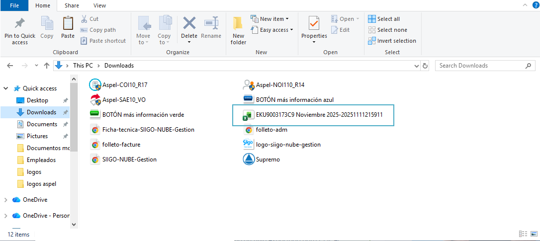 El archivo se descargará en Excel y se guardará automáticamente en la carpeta predeterminada de tu navegador.