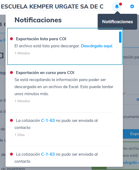 Cuando tengas todo configurado, da clic en Exportar para COI.