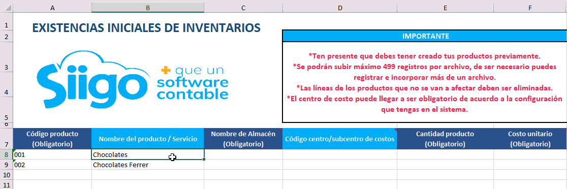 Importar inventario inicial en Siigo Nube desde Excel